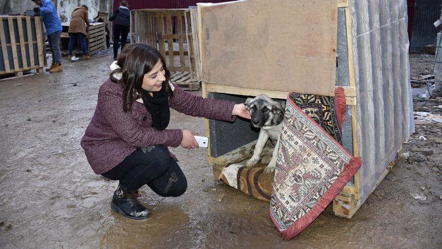 Sokak köpekleri için aynı zamanda yiyecek ve içecek temin etmeye çalıştıklarını ifade eden Özhan, köpekler için kulübe yaptıklarını aktardı.