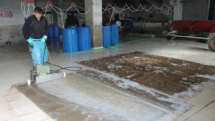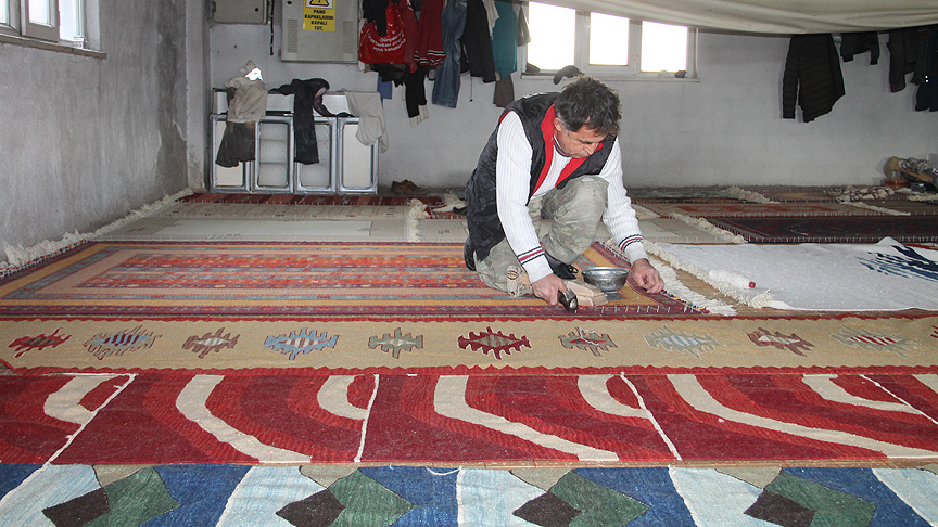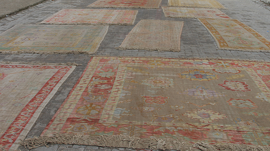 El dokuması halıları özel yöntemlerle bir ayda eskittiğini dile getiren Sarı, 15 gün yola serdikleri halıların sonra tıraşlandığını, 5 kez yıkandığını, parlatılmasından ve son işlemlerinden sonra İstanbul'a gönderildiğini anlattı.