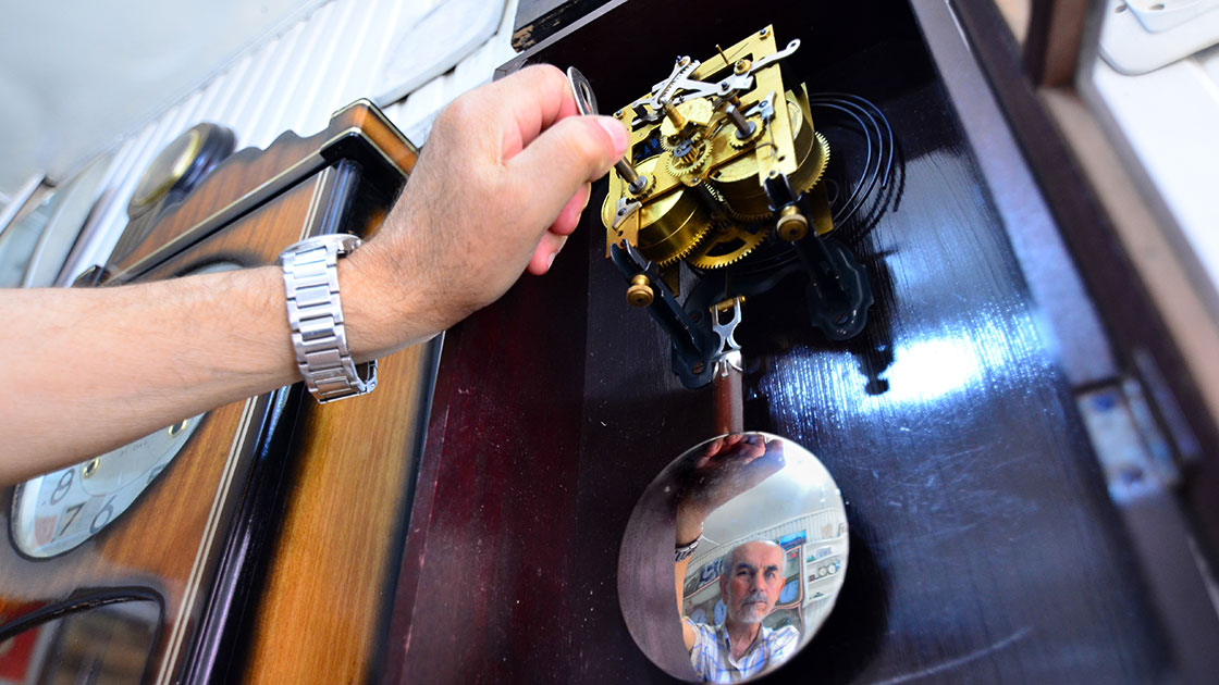Üzeyir usta sarkaçlı saatlere 51 yıldır ayar veriyor
