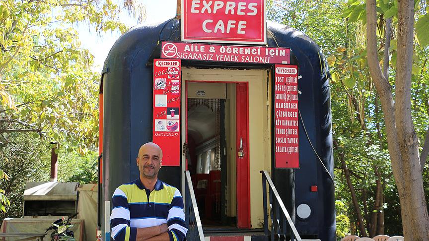 Denizli'nin Çivril ilçesinde 1936'dan 1988'e kadar hizmet veren buharlı kara tren vagonunu kafeye dönüştüren işletmeci, müşterilerine nostaljik ortam sunuyor.