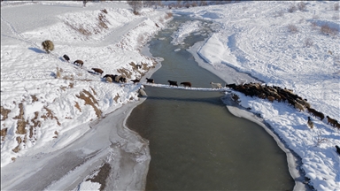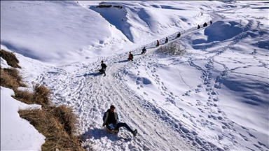 Bölgenin karla kaplanan görüntüsü dronla görüntülendi.