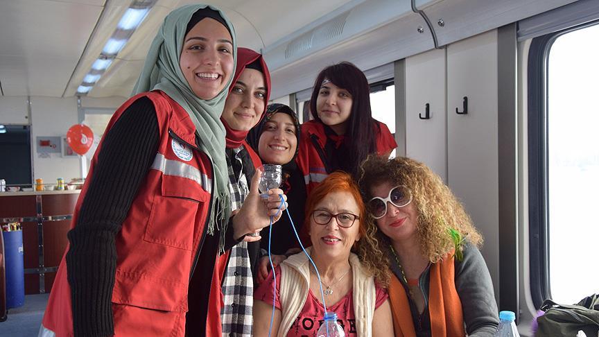 Hacettepe, İstanbul, Ege, İnönü, Ankara, Anadolu, 19 Mayıs, Selçuk, Dumlupınar, Kastamonu, Kafkas, Sakarya Erciyes üniversitelerinden gençler, yolculuk sırasında kuşlara yemlik hazırladı, çocuklara balon dağıttı.