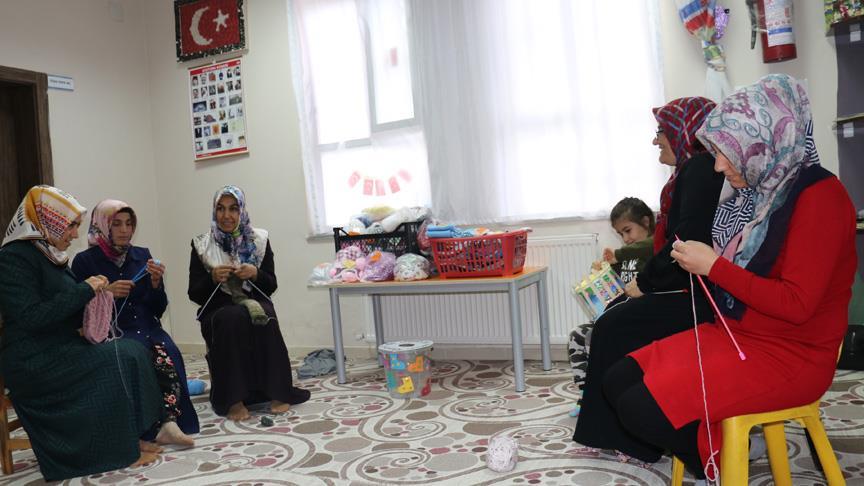 İlçede farklı semtlerde yaşayan yaklaşık 10 kadın, okulda, ihtiyaç sahibi çocuklar için atkı, bere, eldiven ve çorap örüyor. Kadınlara anaokulu öğrencileri de kendilerince destek veriyor.