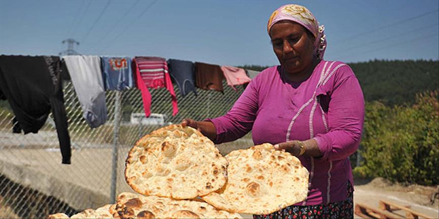 İşçiler, çadırlarda memleketlerinden getirdikleri tandır fırınını çadır kentin yanına montere ederek bayram ekmeklerinin yapıyor.