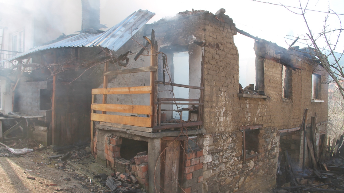 Yangın nedeniyle ev kullanılamaz hale geldi.