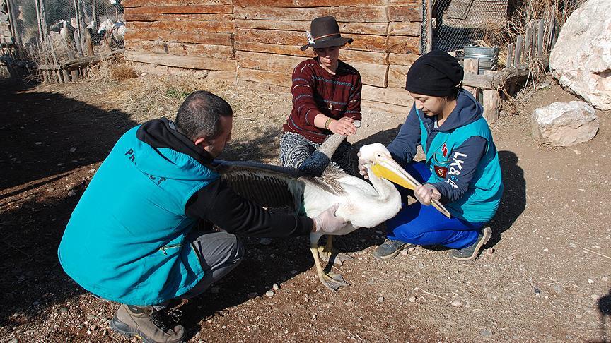 Sarıca, bitkin ve zayıf halde teslim aldıklarını pelikanın, tüfekten çıkan saçmalar nedeniyle yaralandığını tespit ettiklerini kaydetti.
