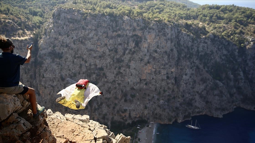 Kelebekler Vadisi'ndeki kayalık alanda belirlediği ve "CK" adını verdiği noktaya ulaşan Koçak, hazırlıklar ve son kontrollerin ardından atlayışını yaptı.