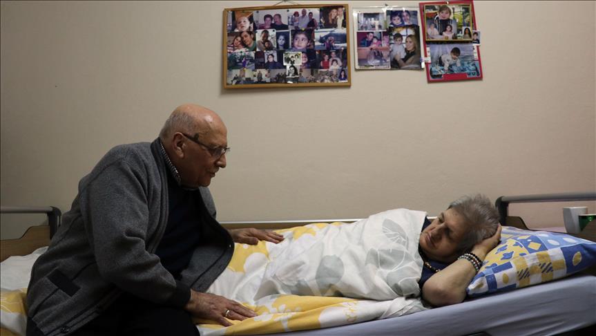 Evli iki çocuklarına da yük olmak istemeyen Adem, huzurevi görevlilerinin sadece temizliğini yaptığı odada 12 yıldır eşinin tüm ihtiyaçlarıyla ilgileniyor, saçlarını tarıyor, üzerini değiştiriyor, tırnaklarını kesiyor.