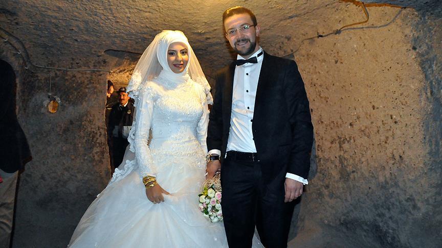 Nevşehir'de 28 yaşındaki Yasin Yılan ve 24 yaşındaki Dursaf Korkusuz çifti, "Kaymaklı Yeraltı Şehri"nin 120 metre derinlikteki bölümünde bir ömür beraberliğe "evet" dedi.