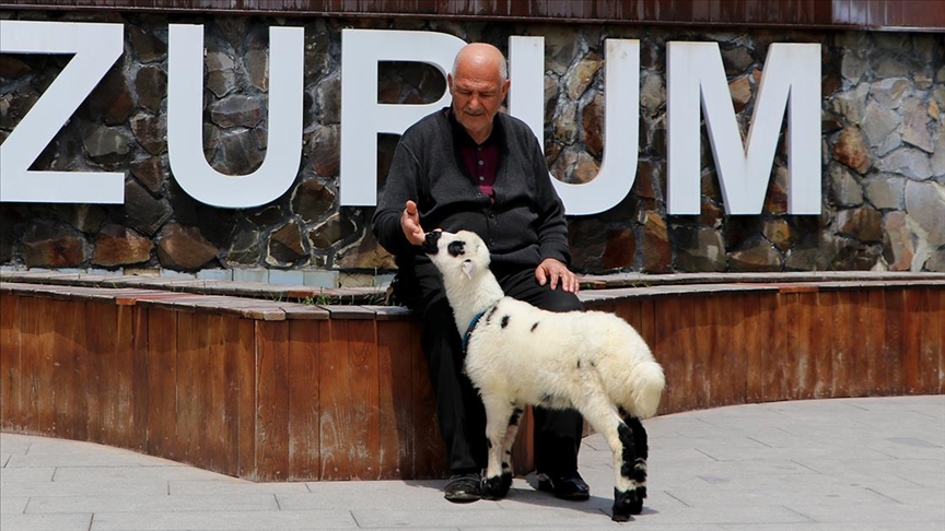 Erzurum'da çocukluğundan beri sütle besleyip yetiştirdiği kuzularla cadde ile sokaklarda gezen ve "kuzulu dede" olarak bilinen 73 yaşındaki Selami Yılmaz'ı hayvanları bir an bile olsun yalnız bırakmıyor.