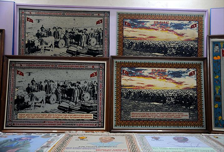 "Eski İngiltere Başbakanı Margaret Thatcher, eski ABD Başkanı George Bush, Rusya Devlet Başkanı Vladimir Putin gibi siyasi liderlerin portrelerini halıya işledikten sonra bilim ve sanat dünyasındaki önemli kişileri çalışmalarımıza dahil ettik. Mevlana, Albert Einstein, Mimar Sinan, Sigmund Freud, Aşık Veysel, Michael Jackson gibi kişilerin portrelerini de dokuduk. Son yıllarda özellikle Çanakkale ve Kurtuluş Savaşı'nı işliyoruz. 'Son Namaz, Vurulmuş Asker, Yıkılmış Çanakkale, Seyit Onbaşı, Kağnılar, Cephede Atatürk' gibi eserler yaptık. Bugün ülkemizde barış içinde yaşayabiliyorsak bu, onlar sayesindedir. Bu nedenle şehitlerimizi, o büyük insanları halıya işlemeyi kendime borç bildim. Bunların yanında Kur'an-ı Kerim ayetlerini de dokudum."