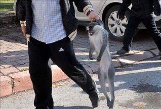 Afyonkarahisar-İzmir karayolunun 10. kilometresindeki bir dinlenme tesisinde bulunan "örümcek" cinsi maymun, görenlerin dikkatini çekiyor.
