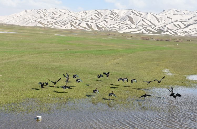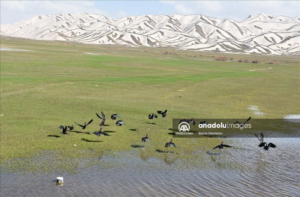 Hakkari'nin Yüksekova ilçesinde karların erimesiyle su seviyesi yükselen Nehil Sazlığı, bugünlerde farklı ülkelerden gelen göçmen kuşlarla şenlendi.