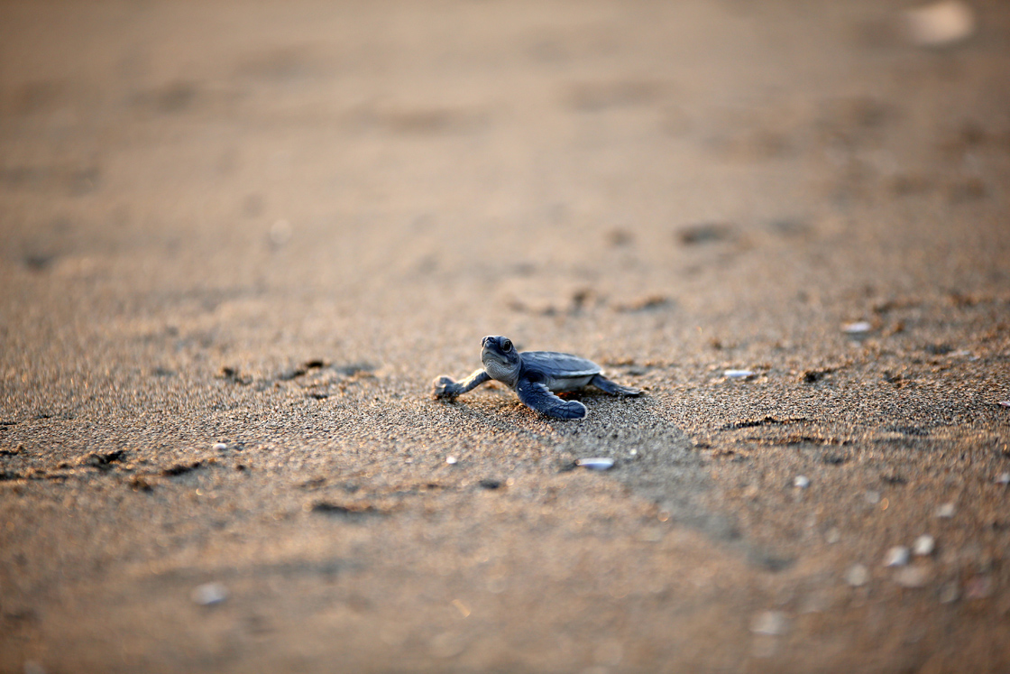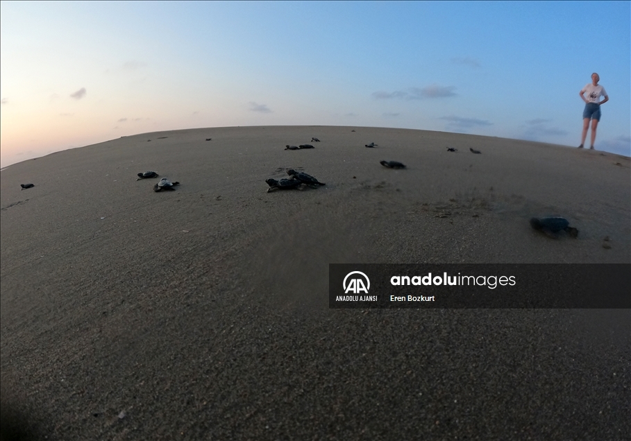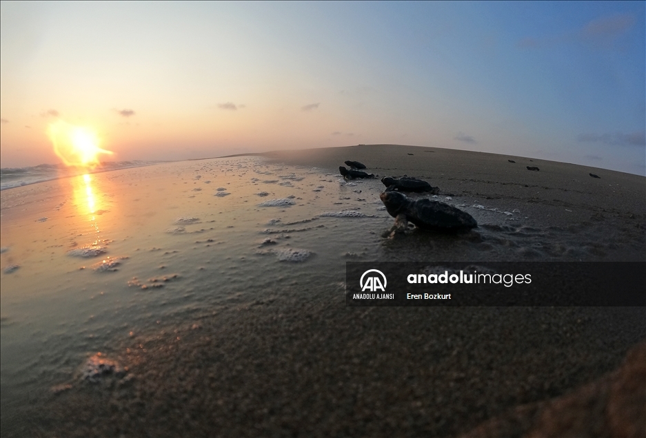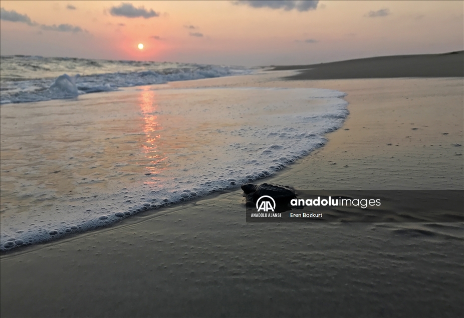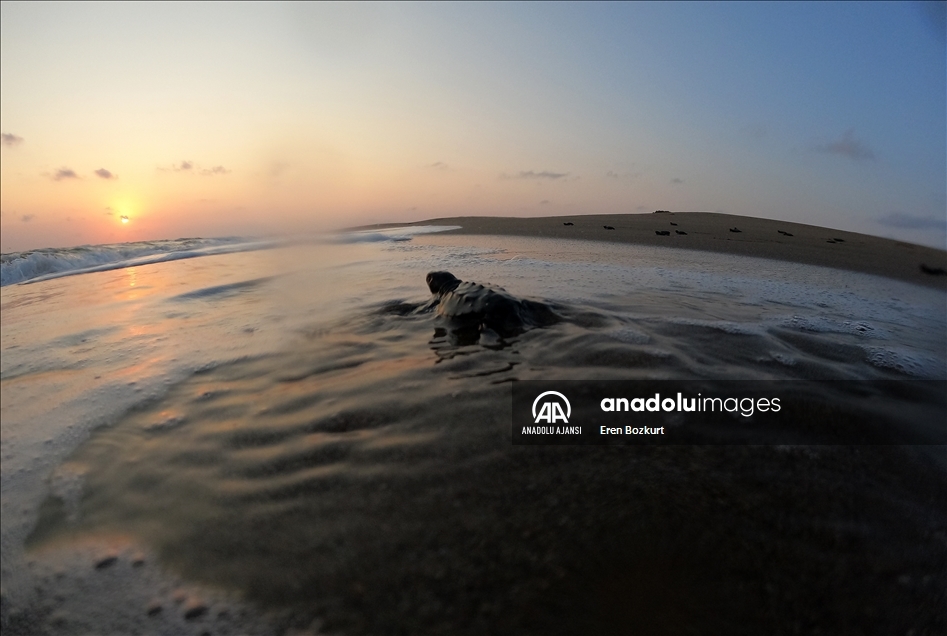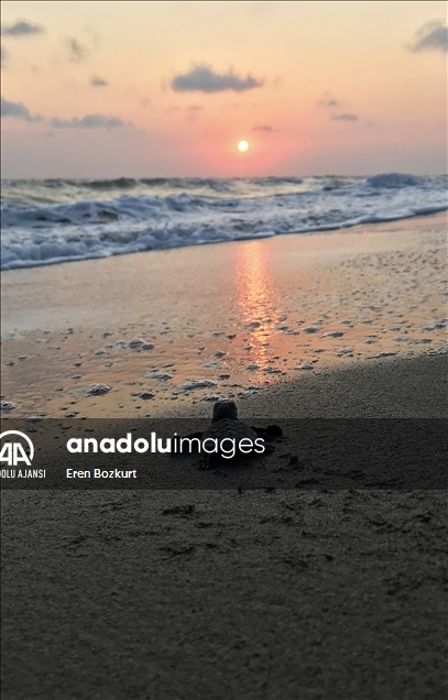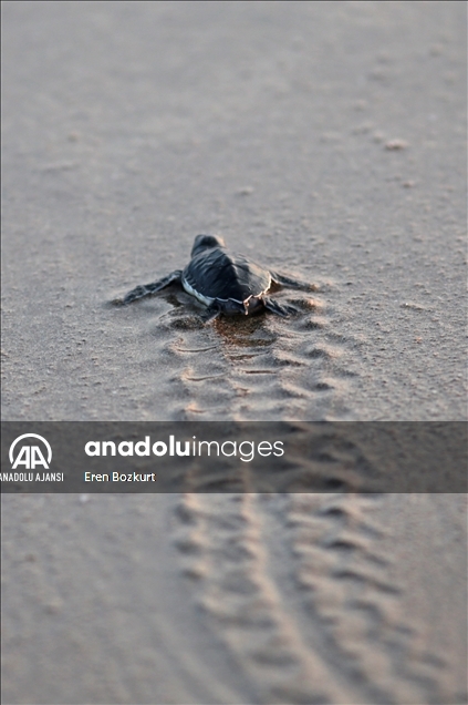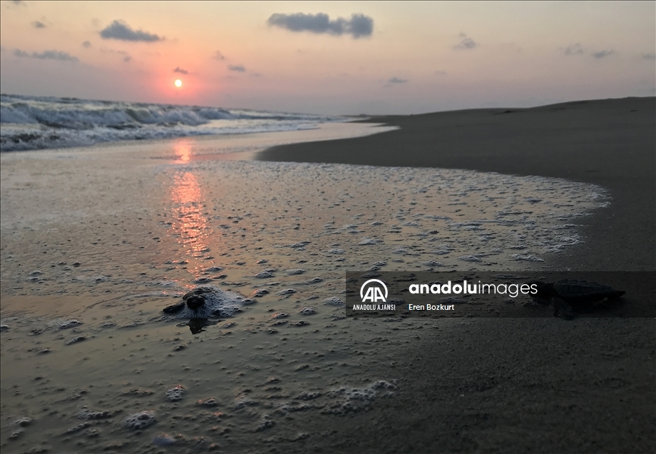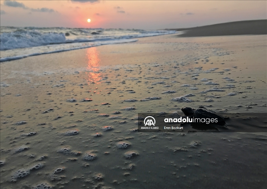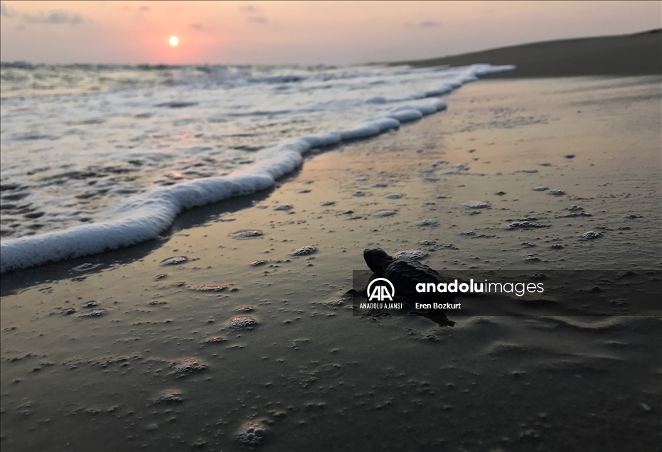 Doğu Akdeniz kıyısındaki Akyatan Yaban Hayatı Geliştirme Sahası'nda yumurtalarından çıkan yeşil deniz kaplumbağaları ve carretta carettalar, mavi sularla buluşuyor.