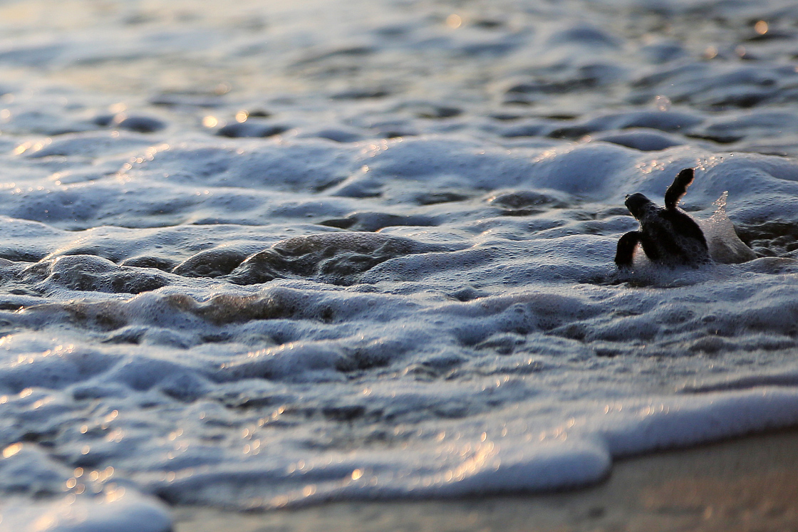 Yumurtalarından çıkan yavru deniz kaplumbağaları mavi sularla buluşup 'hayat yolculuğuna' başlıyor