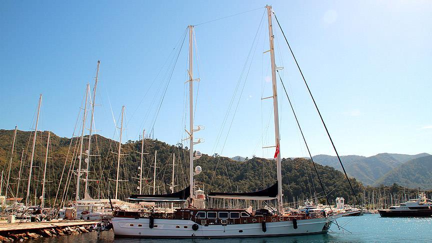Turistler, sezonunun başlaması ve havaların ısınmasıyla "yüzen butik oteller" diye adlandırılan guletlerle Marmaris Körfezi'nden düzenlenen mavi turlara katılıyor.