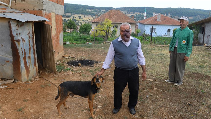Yüzünün sol tarafındaki tümörle yaşamı boyunca mücadele eden Uşaklı çiftçi, her geçen gün büyüyen ve yüzünün büyük bir alanını kaplayan kitleden kurtulmak için yardım bekliyor.