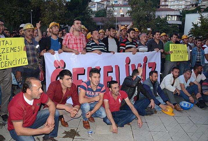 Ereğli ilçesinde özel bir maden ocağında görevli 16 arkadaşlarının işten çıkarılmasına tepki gösteren yaklaşık 500 madenci, 50 kilometrelik yürüyüşün ardından ulaştıkları Zonguldak'ta oturma eylemi başlattı.