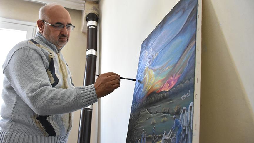 Kilis'te yaşayan Filistin asıllı Suriyeli ressam 55 yaşındaki Muhammed Helvi, yaklaşık 4 yıl önce ülkesindeki iç savaştan kaçarak ailesiyle geldiği Kilis'teki Ekrem Çetin Mahallesi'nde, imkanlarıyla kiraladığı evde hayatını sürdürüyor.