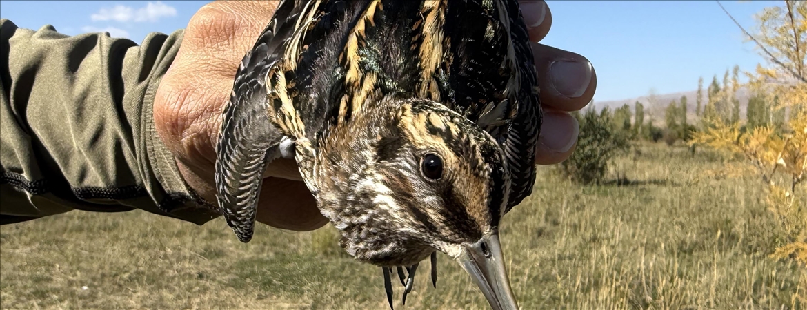 "İngilizcesi de 'jack snipe' dediğimiz bir tür ve çok özel bir türümüz. Tabii bu da küçük olduğu için uydu vericisi takamıyoruz, keşke takabilsek de nereye göç ettiğini öğrensek. Iğdır'da yıl boyu olduğunu düşündüğümüz bir tür. Özellikle bu Aras Nehri Kuş Cenneti, Bulakbaşı gibi sulak alanlarımızda ama emin değiliz çünkü Türkiyemizde ender olarak görünen bir tür. Yani hep bulunsa da denk gelmek, tanımlamak zor. Şimdi bunun halkasını da taktık, doğaya saldık."