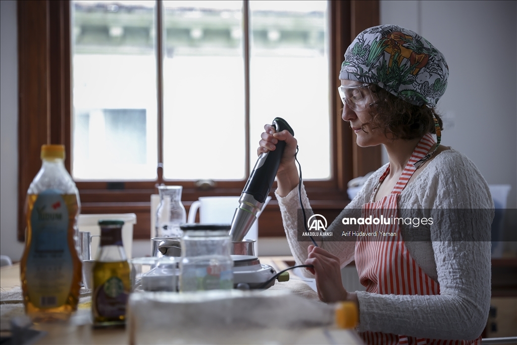 Çevreci arap sabununun evde de "su, PH değeri çok yüksek bir tuz olan potasyum hidroksit veya bir diğer bilinen adıyla kostik ve atık yağ kullanarak" yapılabileceğini anlatan Özkorkmaz, üretimin açık havada yapılması, mutlaka eldiven, koruyucu gözlük ve maske kullanılması gerektiğinin altını çizdi.