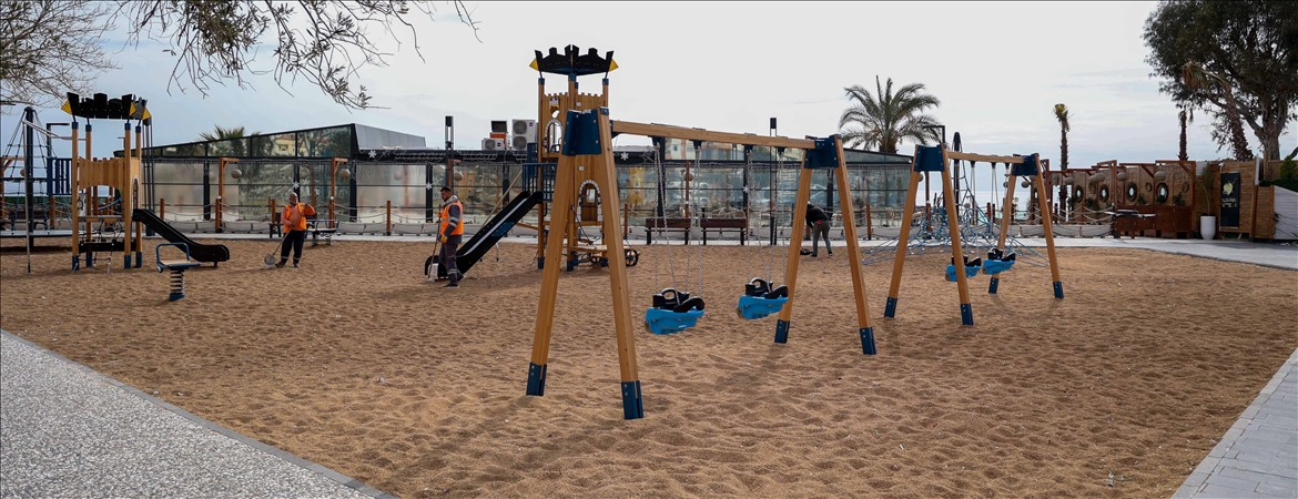 Büyükşehir Belediyesinden yapılan açıklamaya göre, Park ve Bahçeler Dairesi Başkanlığı, parklarda çocuk oyun gruplarında yeni zemin uygulaması çalışması yaptı.