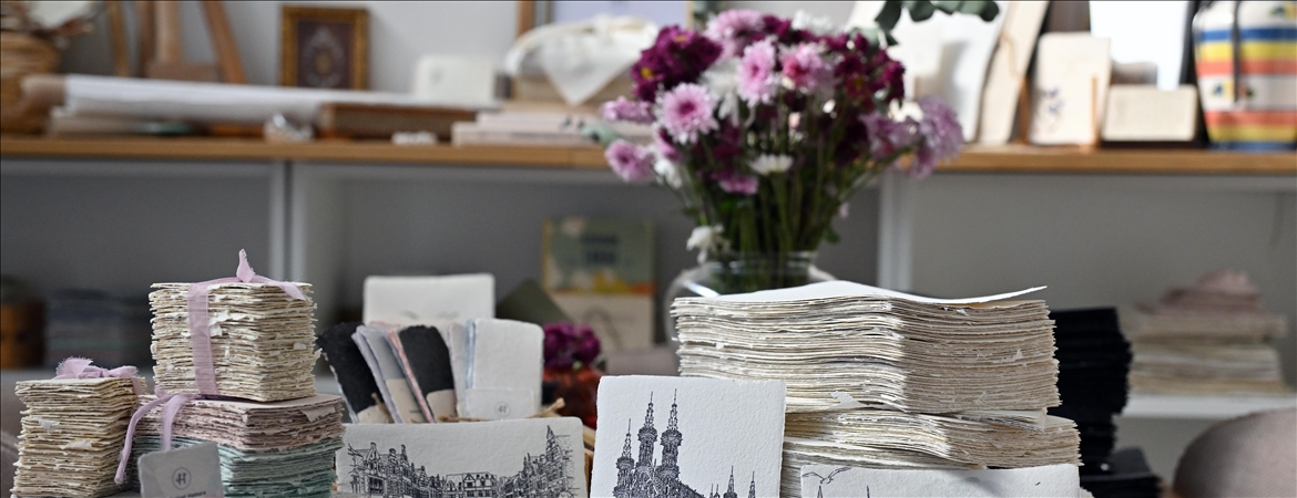 Kavak, Üsküdar'da kurduğu atölyesinde atık kağıtları değerlendirip çeşitli ürünlere dönüştürerek hem yeniden ekonomiye kazandırıyor hem de su ve enerji tasarrufuyla doğanın korunmasına katkı sunuyor.
