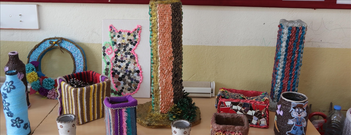 Bölüm öğretmeni Sabri Bıyık da atölyelerinde 140 öğrencinin, atık malzemeleri yeniden kullanıma kazandırma çalışmalarına katıldığını söyledi.