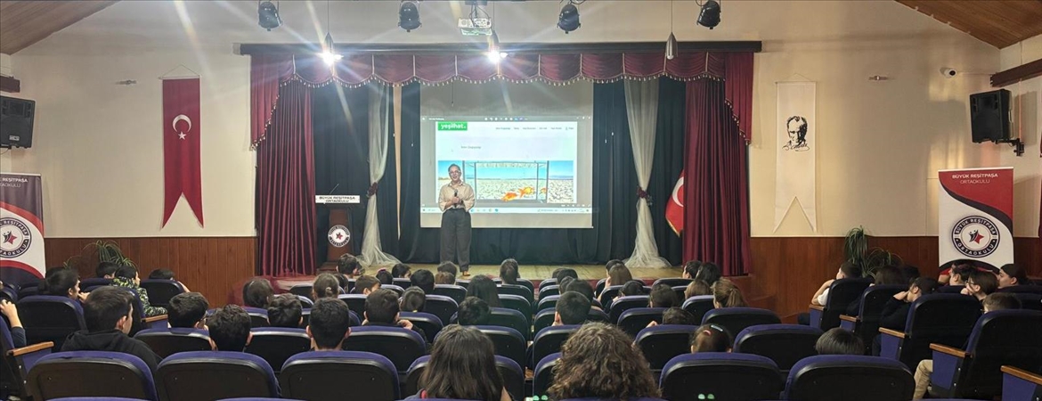 Büyük Reşitpaşa Ortaokulu, Eko-Okul Programı kapsamında ev sahipliği yaptığı iklim değişikliği ve enerji verimliliği konulu panelde, Anadolu Ajansı (AA) Çevre ve Tarım Haberleri Müdürü Hale Aydoğmuş'u ağırladı.