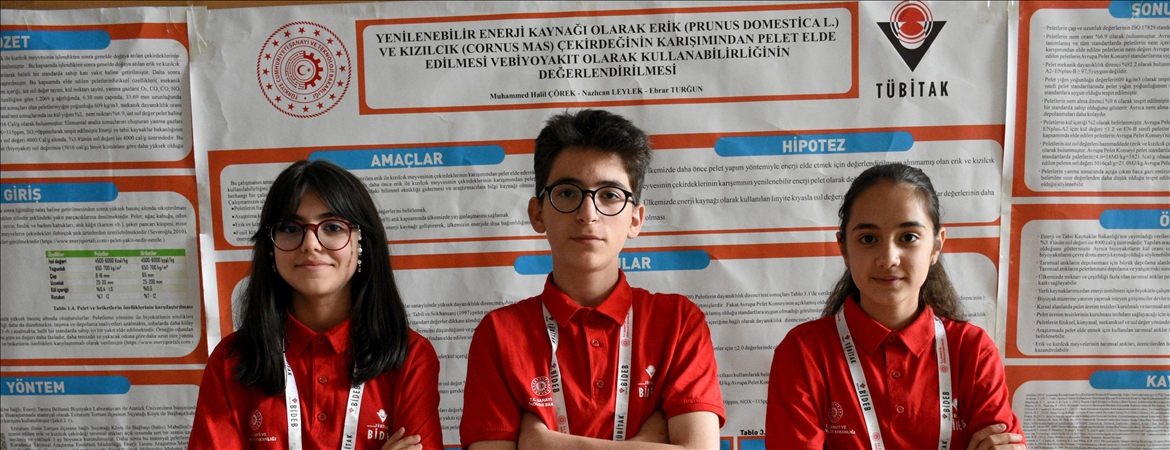 "Dedemin tecrübesi bu projeyi hazırlamama vesile oldu. Yörede bolca yetişen erik ve kızılcık çekirdeklerinden elde ettiğimiz talaştan ürettiğimiz peletin yanarken çıkardığı gazın kirlilik oranı düşük. Ürettiğimiz biyoyakıtın çevre dostu özelliği var. Bu projemizle TÜBİTAK yarışmasında 12 ilden katılan 109 proje arasından bölge birinciliği elde ettik. Ürettiğimiz biyoyakıtın 1 kilosu, 1,5 ila 2 saat ısı üretebiliyor."