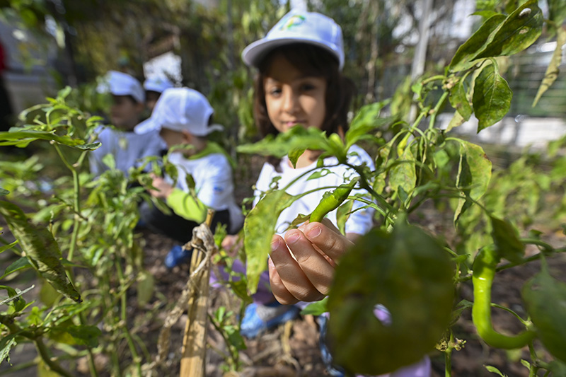 Çocukların bu sebzeleri toplayarak, doğal beslenmelerine de katkı sunduklarını vurgulayan Genç, "Bahçemizde bir kümesimiz var. Çocuklar, tavuklarla ilgilenerek, hayvan sevgisini öğreniyor, hem de onların yumurtalarını toplayarak, doğal yumurta yiyebiliyor." dedi.