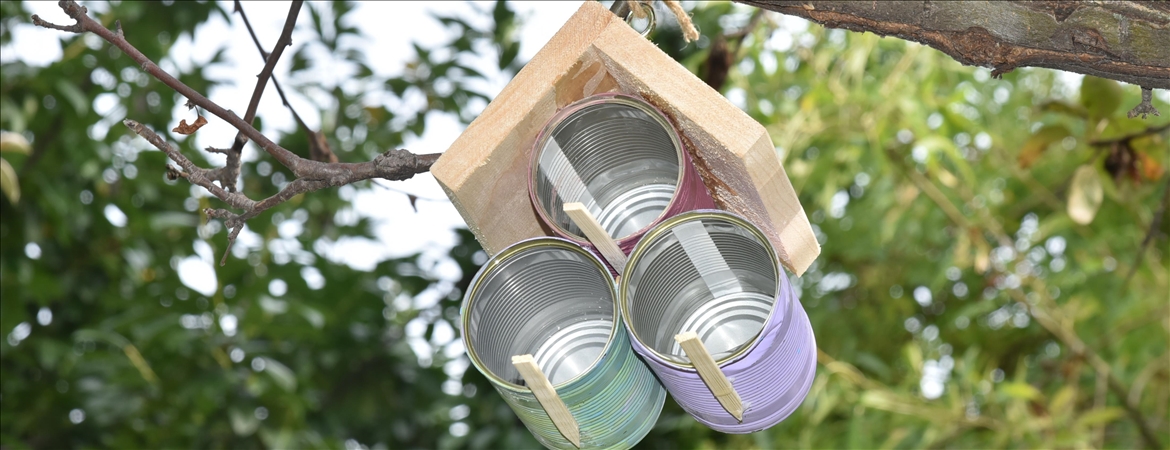 Sahipsiz hayvanları besleyen öğrenciler, konserve mama kutularından ise kuşlar için yuva yaptı.