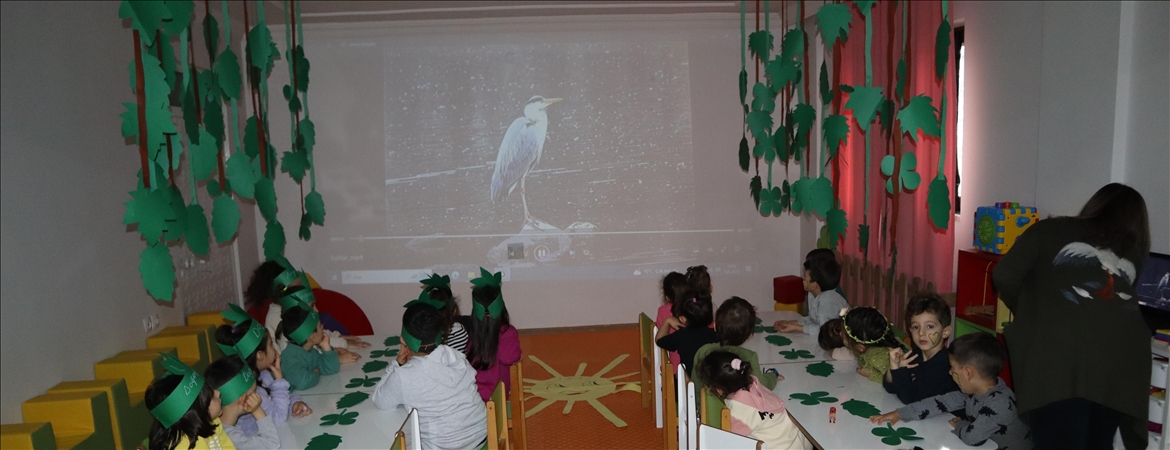 Türkiye'nin en büyük milli parkı olan Ağrı Dağı Milli Parkı'ndaki kuş çeşitliliği hakkında bilgilendirme yapılan çocuklara, doğayı koruma hakkında çizgi filim izletildi.
