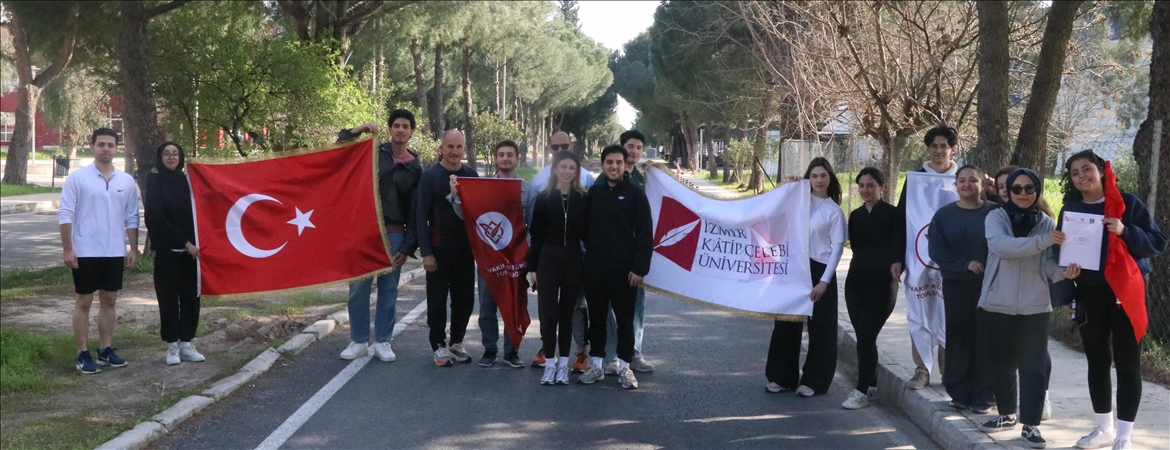 Vakıf Kültürü Topluluğu tarafından üniversitenin Çiğli'deki kampüsünde düzenlenen koşuya, üniversitenin genel sekreteri Nurettin Memur'un yanı sıra akademisyenler ve öğrenciler katıldı.