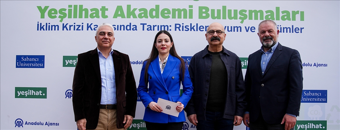 Sabancı Üniversitesi Girişimcilik ve Kuluçka Merkezi'nde (SUCOOL) gerçekleşen, AA Yeşilhat muhabiri Biriz Özbakır'ın moderatörlüğünü yaptığı etkinlikte akademisyenler ve öğrenciler, iklim krizinin tarım üzerinde yarattığı baskı, tarım politikaları ve iklim değişikliğiyle mücadelede teknolojinin rolü değerlendirildi.