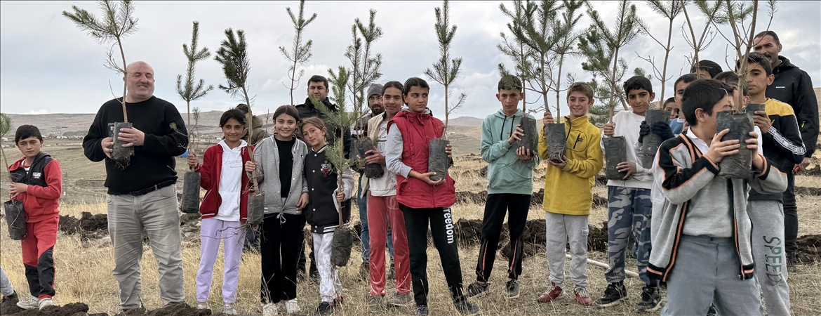 Çağlayık köyünde öğrenci ve vatandaşlarla fidanları toprakla buluştururken duygulandığını söyleyen Bayraktar, Edirne'den Ardahan'a 81 ilde etkinlik yapmak istediğini ifade etti.