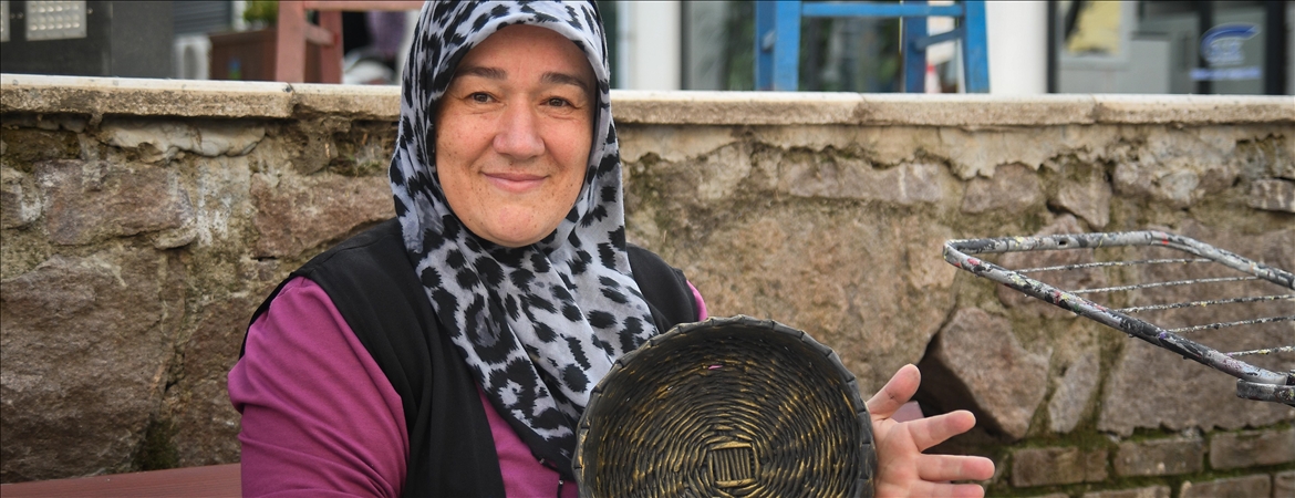 Kursiyerlerden Halime Bahadır, AA muhabirine, sepet üretiminde düz paket kağıtları yerine özellikle eski gazeteleri tercih ettiklerini söyledi.