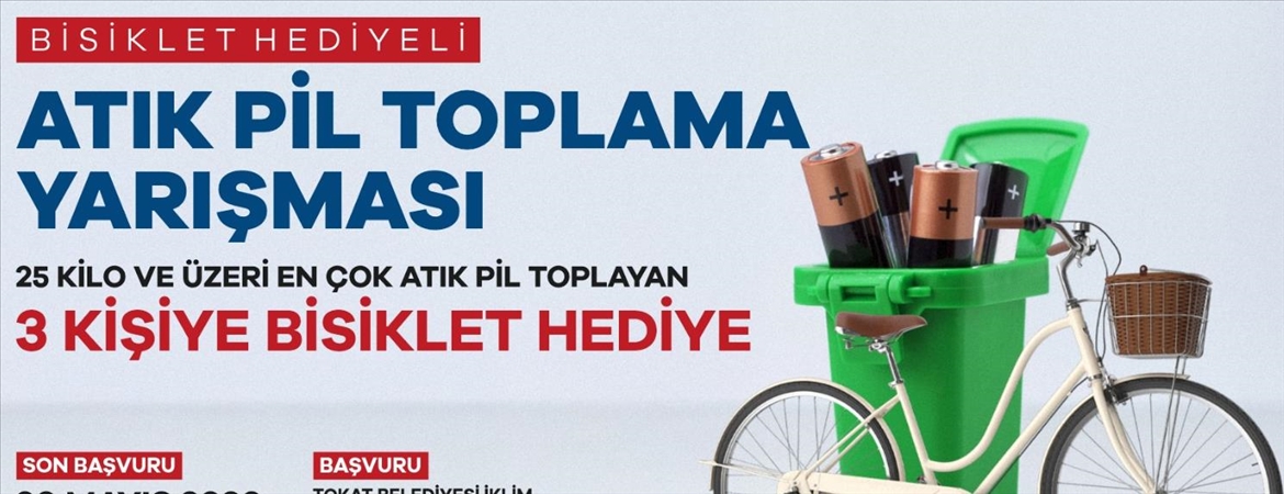 Belediyeden yapılan yazılı açıklamaya göre, yarışma kapsamında 25 kilo ve üzeri en çok atık pil toplayan 3 kişiye bisiklet hediye edilecek. Son başvuru tarihi 30 Mayıs 2026 olarak belirlenirken hem çevreyi korumak hem de bisiklet kazanma şansı yakalamak isteyen vatandaşlar için başvurular Tokat Belediyesi İklim Değişikliği ve Sıfır Atık Müdürlüğü üzerinden alınacak.