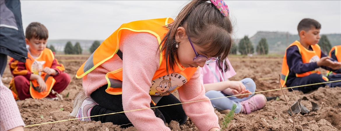 Müdürlükte, görevli mühendisler ve teknik personel tarafından karşılanan çocuklar, "Ağaç yaşken eğilir" ana fikriyle yapılan bilgilendirmenin ardından mevsime uygun olarak tohumları ekiyor.