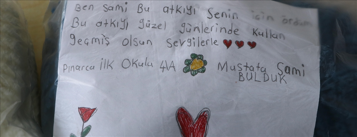 Öğrencilerden Hilal Ayvaz ise depremin kendilerinin başlarına da gelebileceğini vurgulayarak, "Depremzedeler için atkı, bere örmek bizleri mutlu ediyor. Atkı ve berelerin yanına notlar da yazıp koyduk. Atkıların ulaşacağı kişilerin de bizlere mektup yazıp duygularını ifade etmelerini isterim." dedi.
