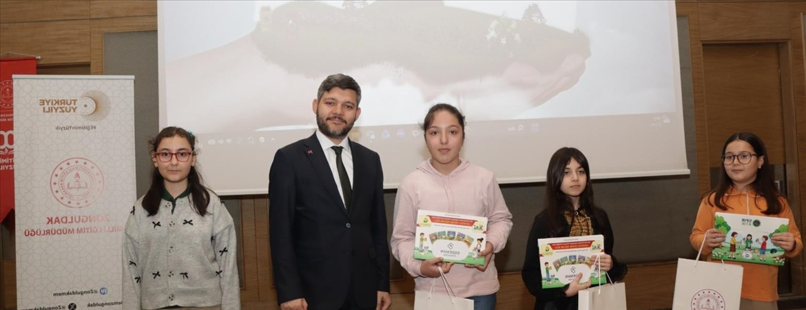 İl Milli Eğitim Müdürlüğü, Çevreci Çocuk Eğitim Yayınları ve çevreye duyarlı işletmelerin desteğiyle yürütülen "67 Bin İnci için Ben de Varım" projesi kapsamında düzenlenen "Geleceğim İçin Dönüştürüyorum - Sıfır Atık Resim ve Afiş Yarışması"nda ilkokul, ortaokul ve lise kategorilerinde dereceye giren öğrencilere ödülleri verildi.