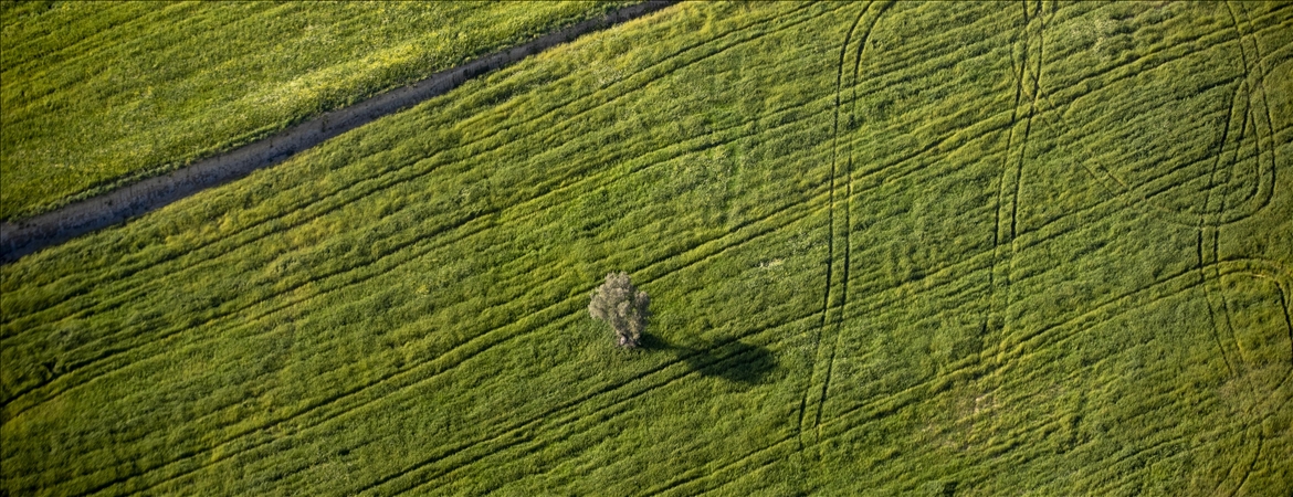 Yılın her döneminde üretim yapılan tarım arazileri Anadolu Ajansı (AA) ekibi tarafından helikopterle havadan görüntülendi. Farklı ürünlerin yer aldığı araziler, farklı renkleriyle de görsel şölen oluşturdu.