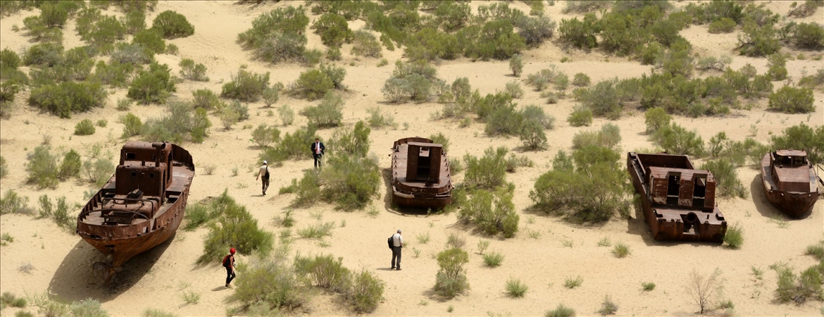 Daha önce dünyanın dördüncü büyük gölü olarak bilinen Aral Gölü, 2020'de eski kıyılarından 170 kilometreye kadar geri çekilirken suların çekildiği 60 bin kilometrekarelik alanda "dünyanın en genç çölü" olarak nitelendirilen Aralkum Çölü meydana geldi.