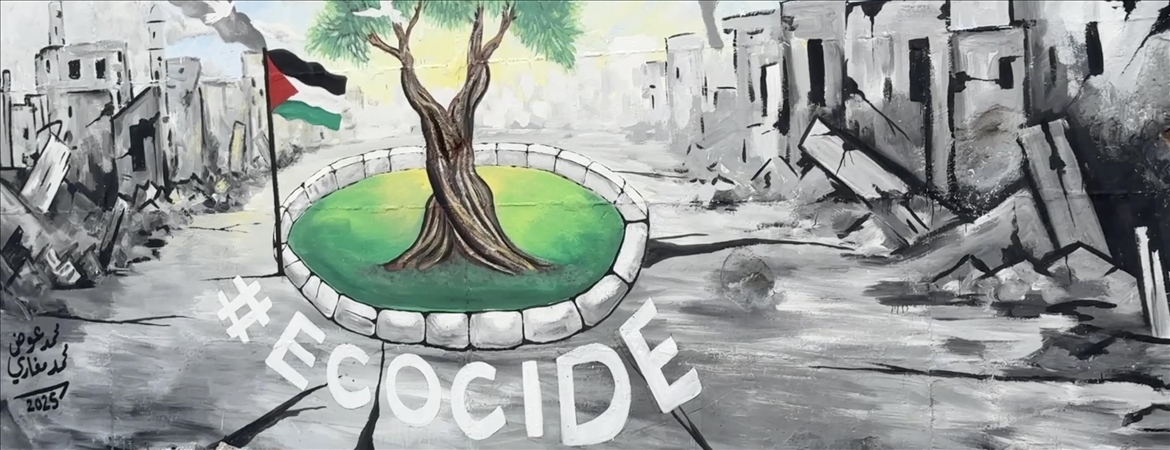 Gazze Şeridi'nin güneyindeki Han Yunus kentinde düzenlenen etkinlikte bir duvara "gri renkli yıkıntıların, molozların, bombardıman sonrası gökyüzüne yükselen kara dumanların ortasında yeşermiş bir ağaç" resmedildi ve altına da "COP30 ve ECOCIDE" yazısı yazıldı.