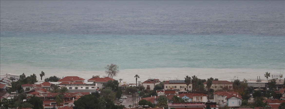 Kentteki aşırı yağış sebebiyle çamurlu yağmur suyunun döküldüğü Ölüdeniz Mahallesi'nde denizin rengi kahverengiye döndü.