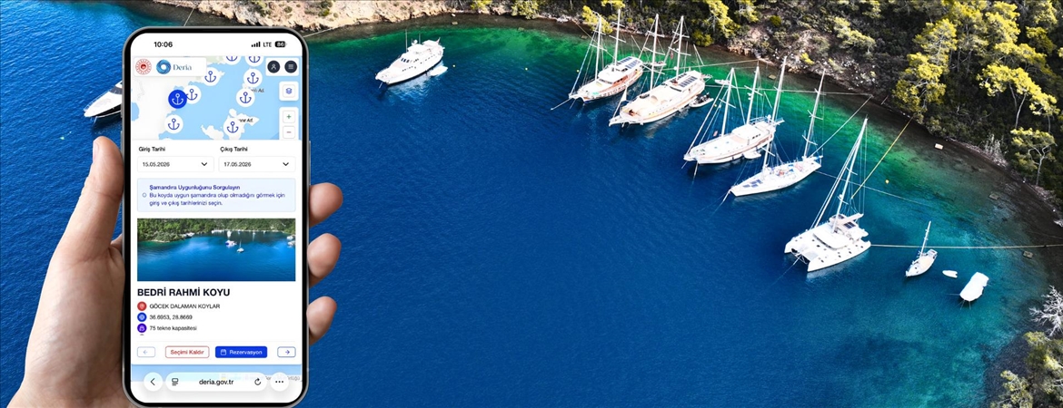 Tekne sahipleri, deria.gov.tr adresi üzerinden koylardaki uygun bağlama noktalarını harita üzerinden görebilecek, yerlerini önceden ayırtarak ödemelerini çevrim içi, güvenli bir şekilde gerçekleştirebilecek.