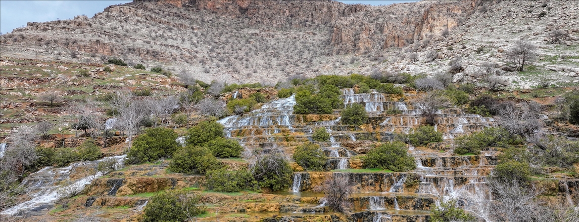 Diyarbakır'ın Çüngüş ilçesinde Maden Dağlarının sarp yamaçlarından çıkan yeni pınarlar şelaleye dönüşerek Atatürk Baraj Gölü'ne dökülüyor.