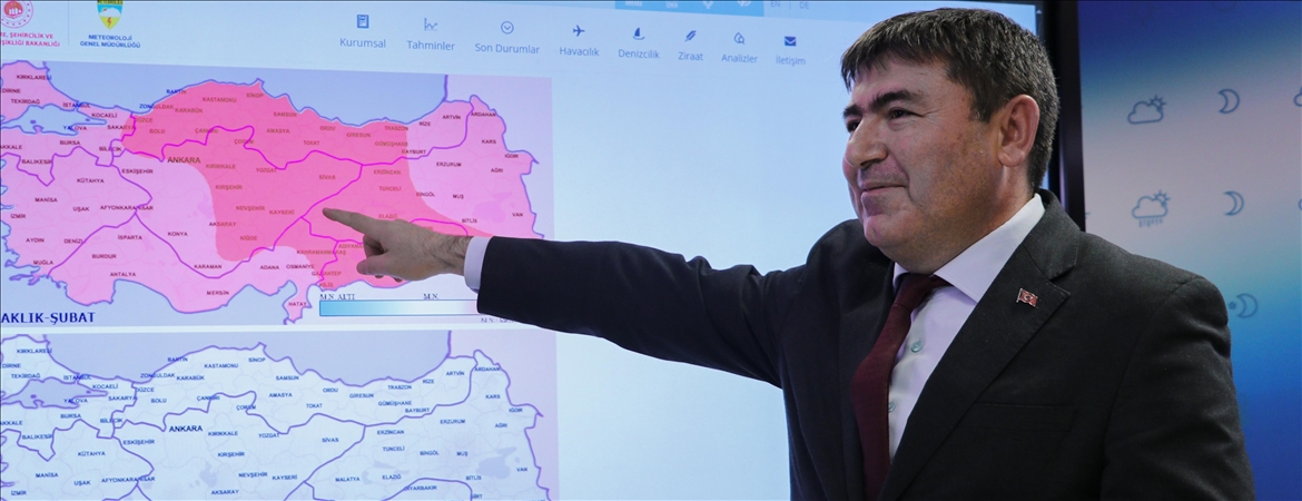 "Şubat ayı yurt genelinde yine sıcak geçecek. Batı Karadeniz, Orta Karadeniz ve Doğu Karadeniz'in batısı, İç Anadolu'nun doğusu ve kuzeyi, Doğu Anadolu'nun batısı, Güneydoğu Anadolu'nun tamamı ve Akdeniz Bölgesi'nde Kahramanmaraş çevrelerinde sıcaklıkların mevsim normallerinin 1 ila 2 derece üzerinde seyretmesini bekliyoruz. Diğer kesimlerde ise sıcaklıklar mevsim normallerinin 0,5 ila 1 derece üzerinde seyredecek."