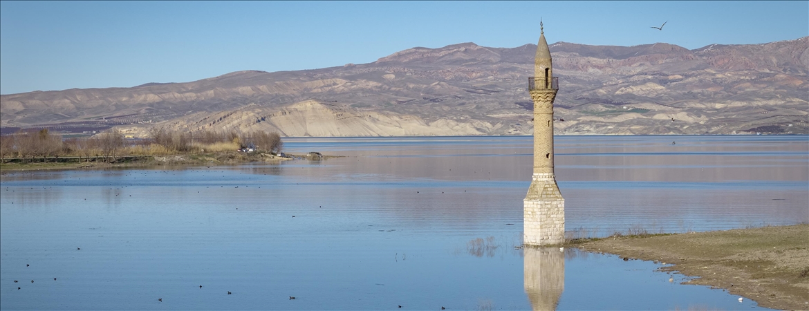 Su havzası Diyarbakır, Elazığ ve Malatya'ya kadar uzanan barajın Malatya kesimindeki su artışı dronla görüntülendi.