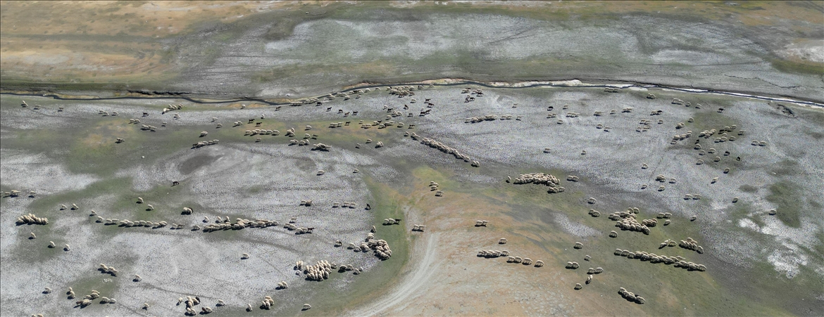 Kıraç araziyi andıran barajlardaki yeşeren bölgelerde ise besiciler hayvanlarını otlatıyor.